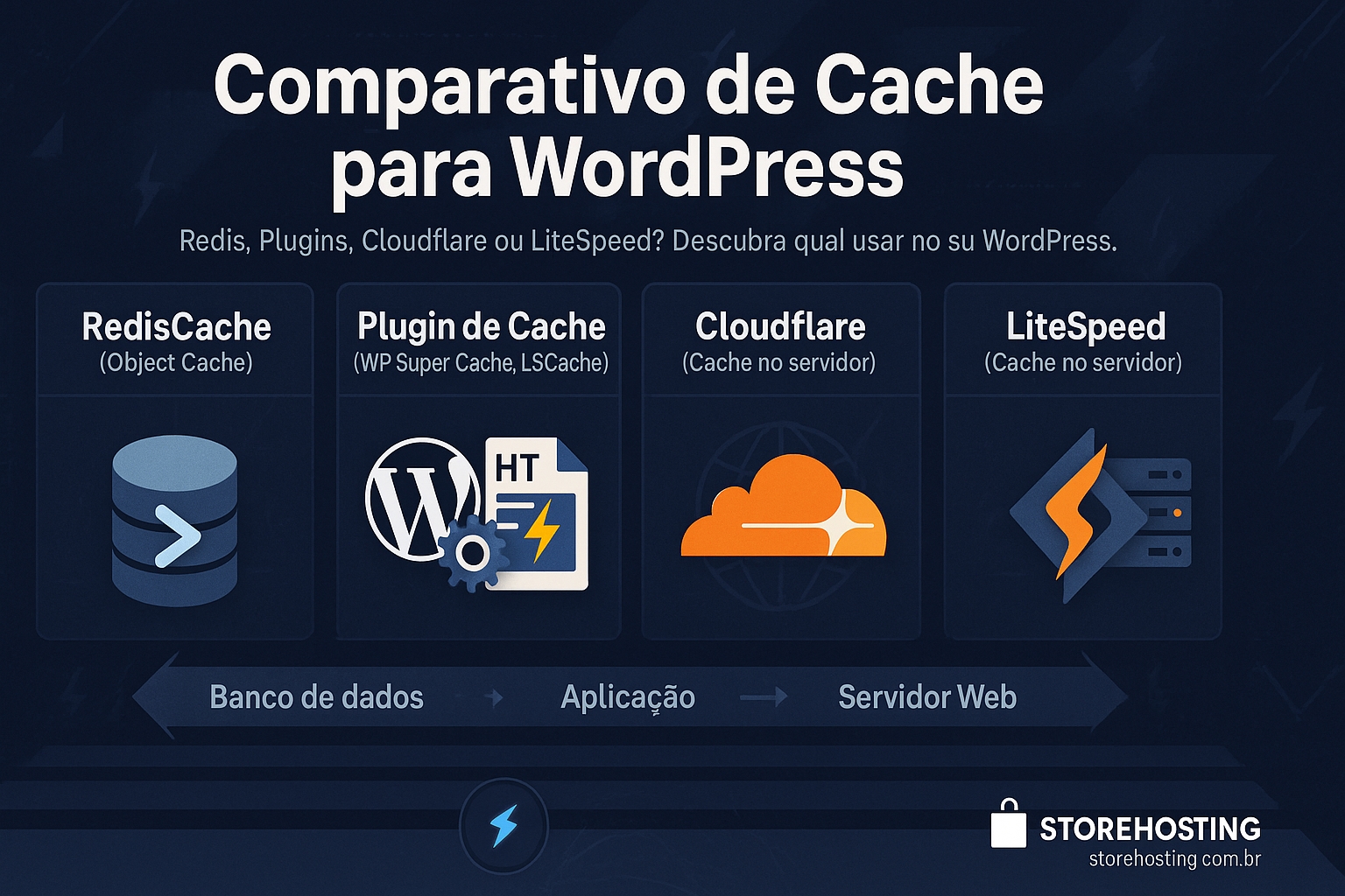 Se você usa a StoreHosting, já tem acesso a várias dessas ferramentas sem custo adicional, como LiteSpeed Cache, Redis e integração com Cloudflare, tudo pronto para acelerar sua página de forma inteligente. Vamos entender cada uma delas: